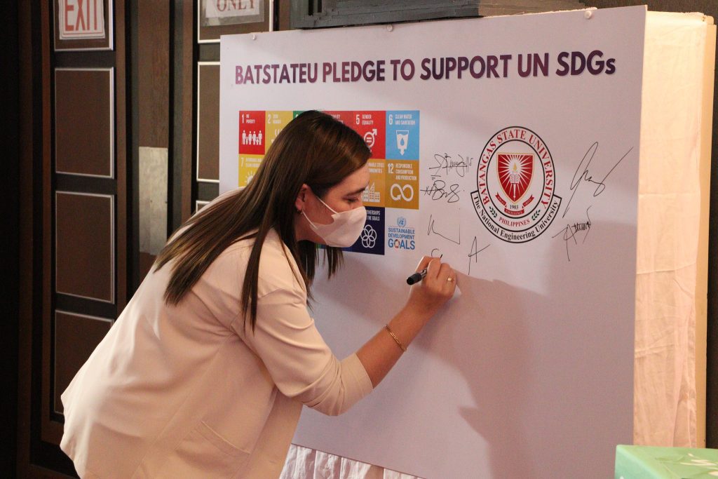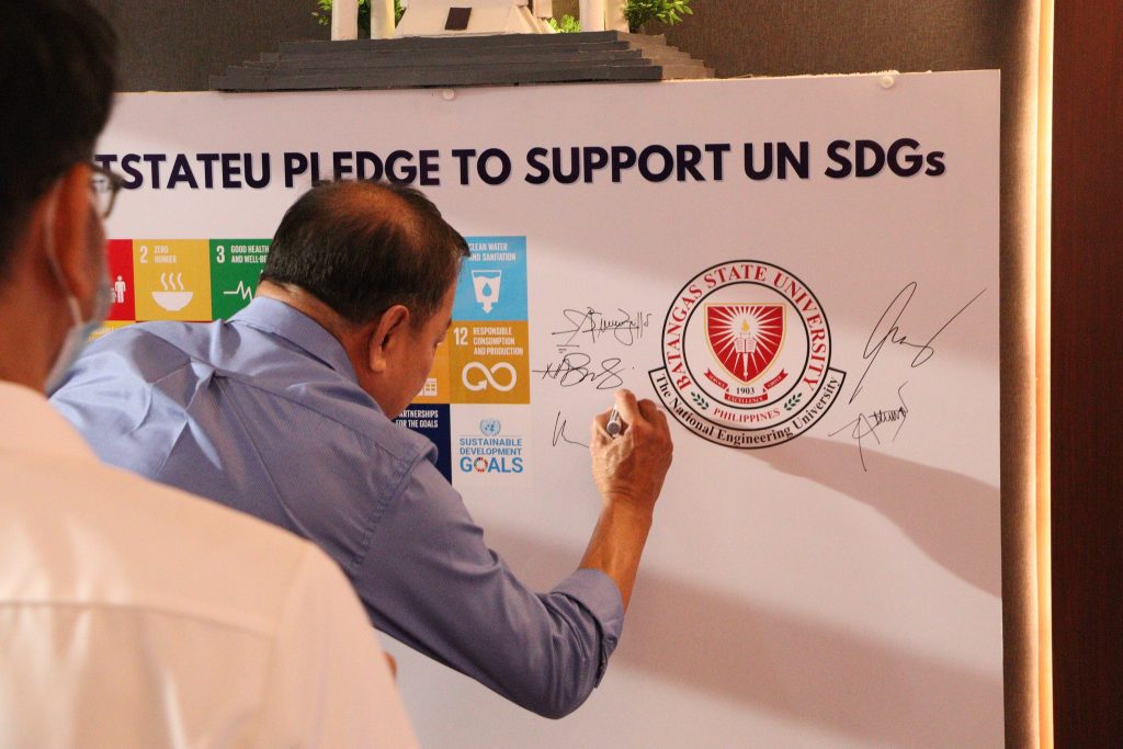 Spearheaded by the University President, Dr. Tirso A. Ronquillo, officials of the Batangas State University-The National Engineering University signed the pledge to support the 17 UN Sustainable Development Goals. This commitment signifies the strong encouragement of the University to all of its stakeholders to take part in attaining the Global Goals. The university hopes that through the leadership of the sustainability champions present in the ceremonial signing, future sustainability endeavors will be supported with great enthusiasm.