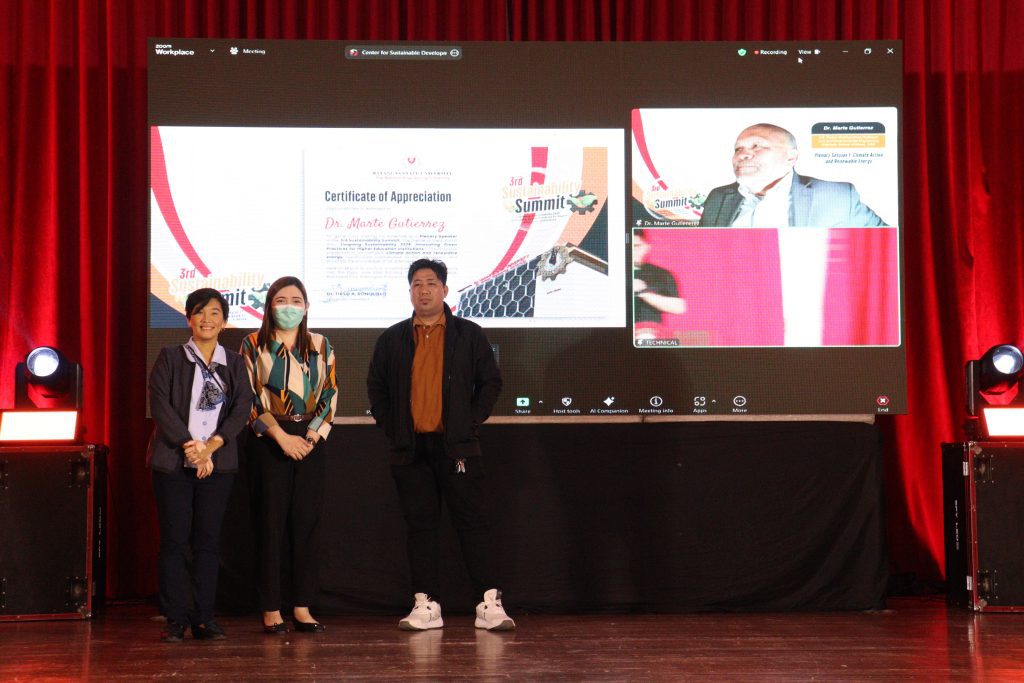 Dr. Gutierrez, joined live via Zoom video conferencing, highlighted the vital role of universities in addressing climate change. His presentation, “Universities as Leaders in Climate Resilience and Carbon Reduction,” emphasized the impact of greenhouse gas emissions on vulnerable countries like the Philippines. Dr. Gutierrez urged universities to drive climate action through education, research, and sustainable practices. He identified key research areas, including electric vehicles, renewable energy, plant-based food alternatives, and plastic waste reduction. He also stressed the importance of preserving mangroves and coastal ecosystems. He called for integrating climate studies into curricula, developing renewable energy solutions, and achieving carbon-neutral campuses. Collaboration between academia, government, and industry, he said, is needed for advancing climate resilience.