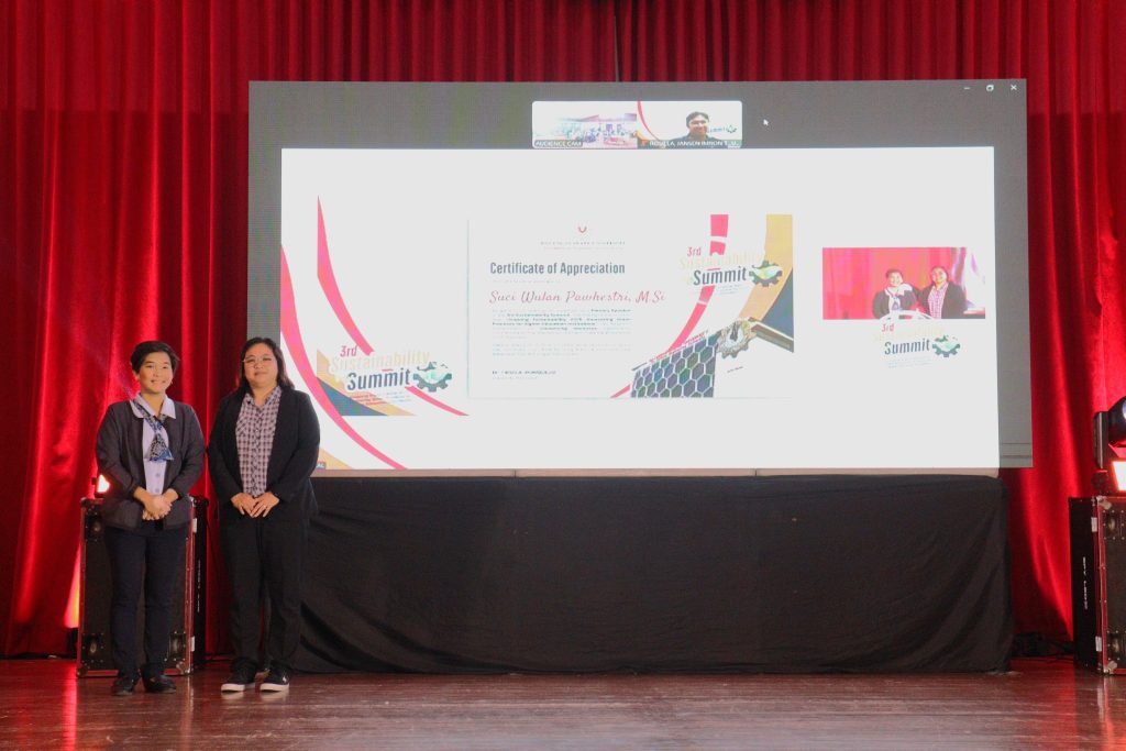 Session 2 of the conference, led by Ms. Suci Wulan Pawhestri via Zoom, focused on sustainable water management aligned with SDG 6 (Clean Water and Sanitation). She highlighted her university’s strategies for efficient water use, particularly during religious rituals, and outlined conservation efforts such as rainwater collection, biopore infiltration holes, and artificial ponds covering 21% of open space. Additional measures include water-saving equipment, awareness campaigns, and recycling initiatives like aquaponics and hydroponics. Ms. Pawhestri emphasized collaboration, education, and community engagement for long-term sustainability. During the Q&A session, facilitated by Ms. Richelle A. Sulit, Head of Sustainable Development Office of Lipa Campus, university staff inquired about enhancing resource conservation and policy changes, with questions to be forwarded to the speaker for further response.