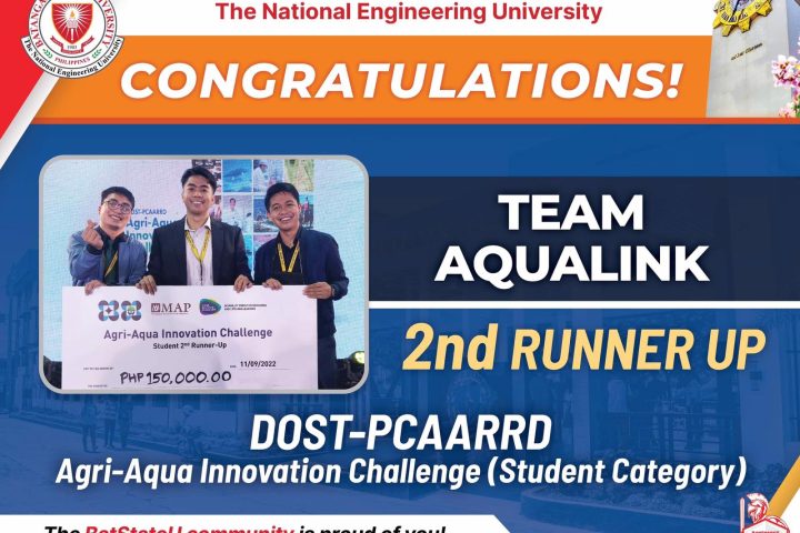 Team AQUALINK from Batangas State University, The National Engineering University bagged the 2nd Runner Up for the Agri-Aqua Innovation Challenge (Student Category) with their Aqualink: An IOT – based platform with Data Analytics capability for the Aquaculture Industry. Funded by the Department of Science and Technology – Philippine Council for Agriculture and Resources Research and...