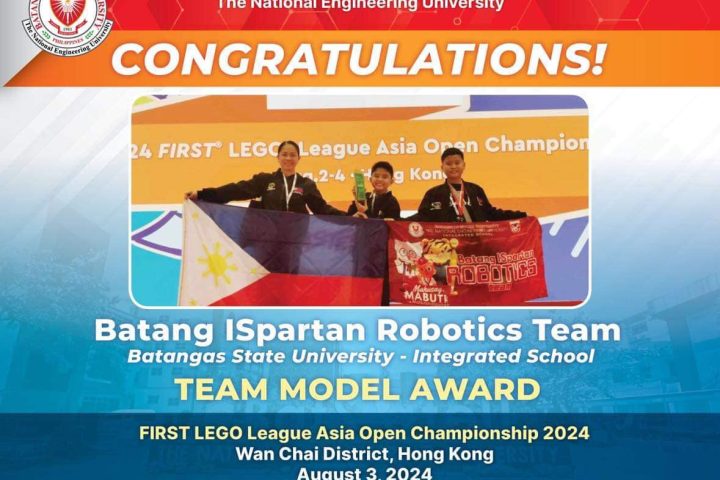 Proving that innovation knows no age, the Batangas State University, The National Engineering University (BatStateU The NEU) Batang ISpartan Robotics Team secured win at the 2024 FIRST LEGO League (FLL) Asia Open Championship. Held on August 3 at the Hong Kong Convention and Exhibition Centre, the competition saw these young engineers clinch the prestigious Team...